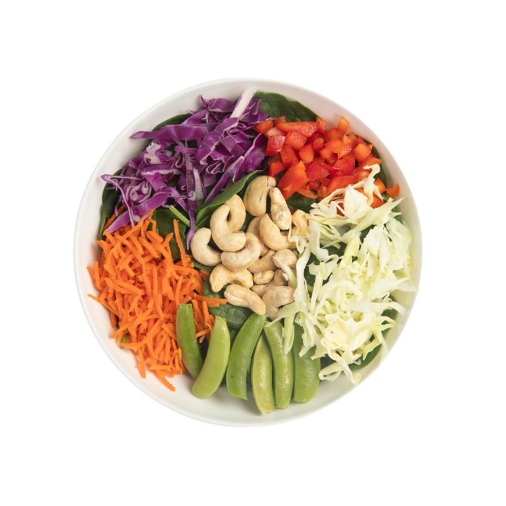 White cabbage, red cabbage red peppers, carrots, sugar snap peas, spinach.