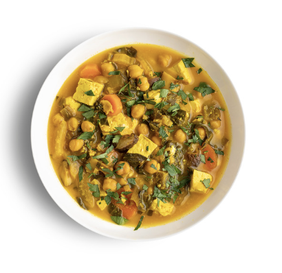 Carrot, potato, garlic, ginger, bok choy, lentils, turmeric, onion, celery, lemon, spices.