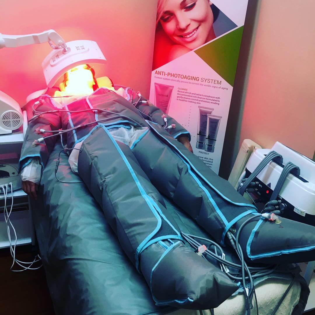 Infrared Pressotherapy is a detoxifying treatment, which helps promote the body's natural toxin-clearing functions, revitalizes and oxygenates the body's tissues to help slim and redefine the stomach, arms, and legs.