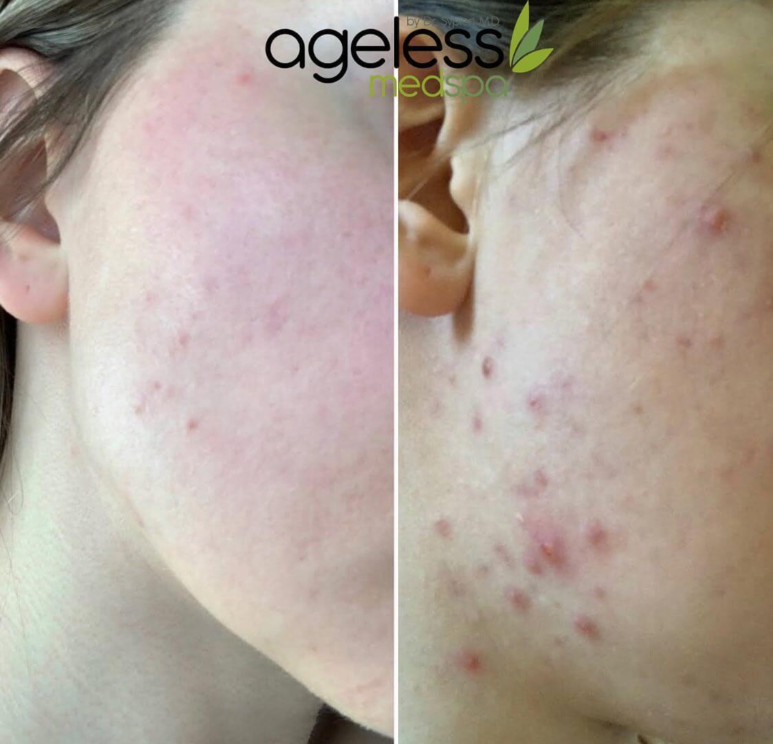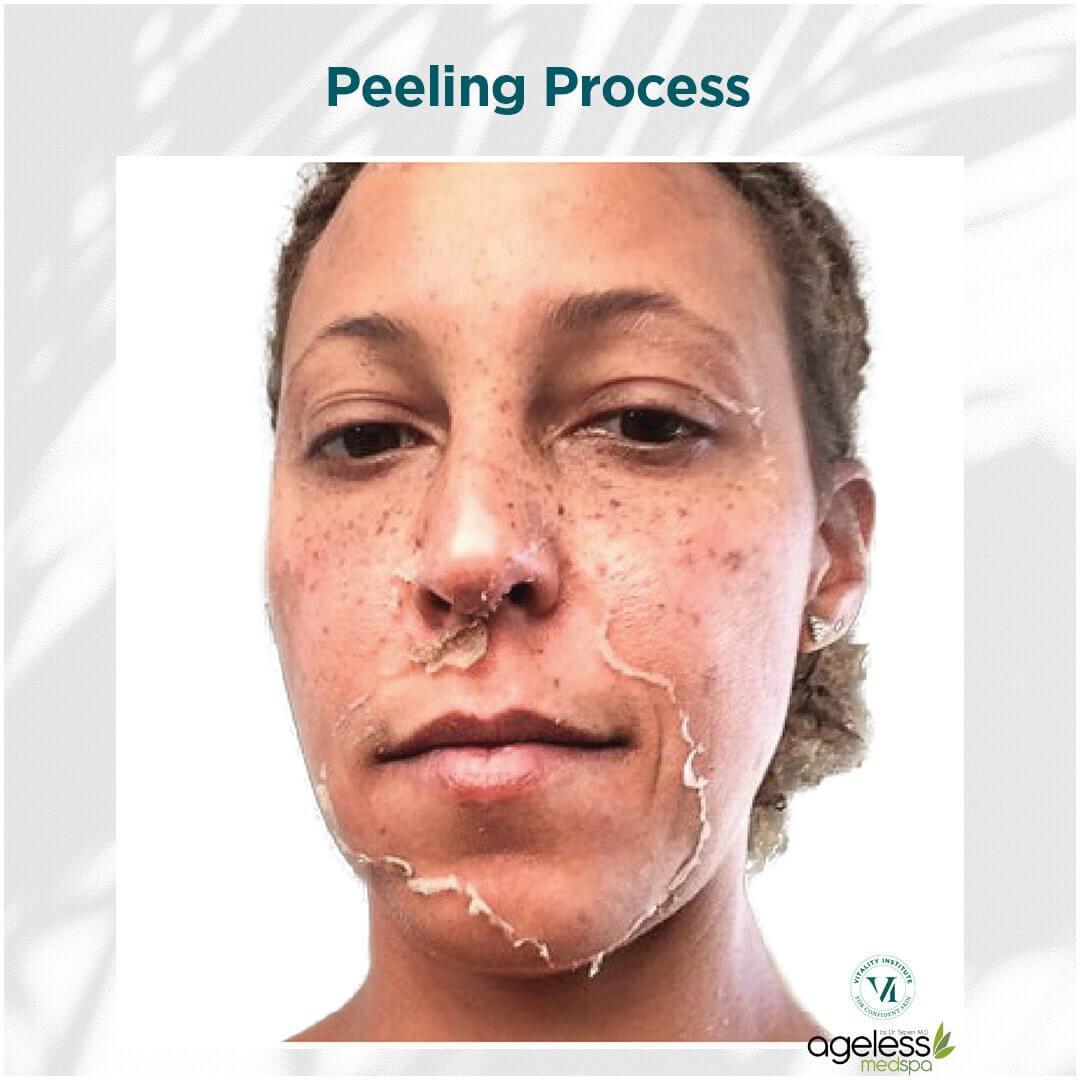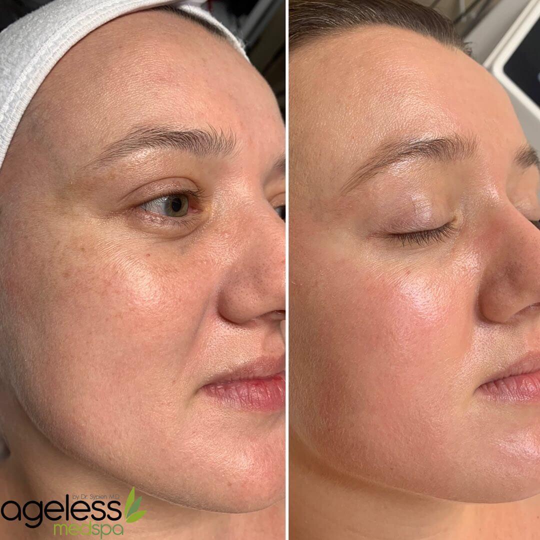The light peels at Ageless MedSpa include Salicylic, Glycolic, Lactic, and Mandelic, all of which can help remove blemishes and/or acne, wrinkles, rough skin, and discoloration. It may also improve fine lines and wrinkles, sun damage, milk scarring, oiliness and congestion, skin tone and texture, and hyperpigmented areas.
