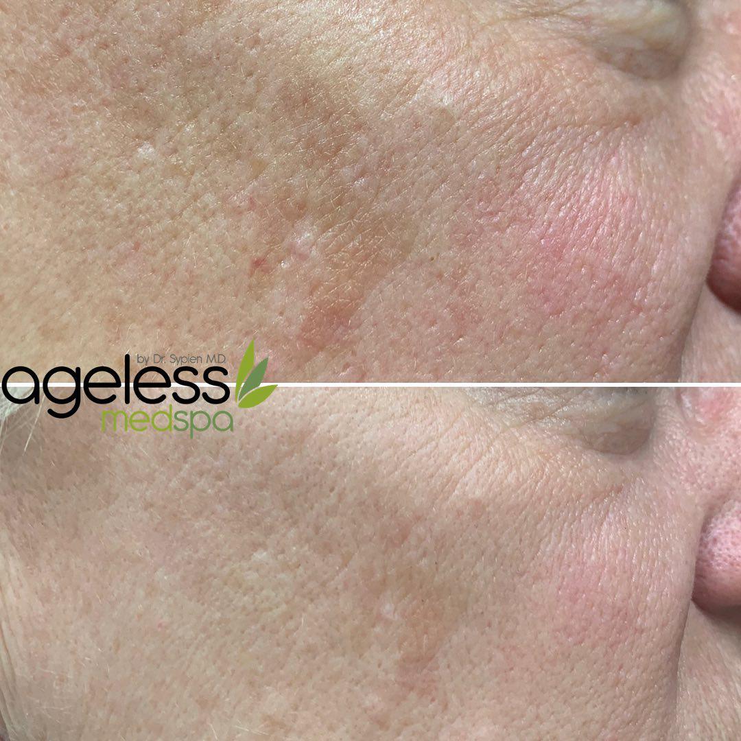 Ageless MedSpa in Chicago, Illinois offers IPL (intense pulsed light) photorejuvenation treatments that are designed to reduce redness and flushing, treat pigmentation like age spots, liver spots, pigmented freckles, and sun and smoke damage, treat broken blood vessels (capillaries), even your skin tone, reduce fine lines, wrinkles, pore size, and acne scars, smooth your skin and make your skin look healthy.