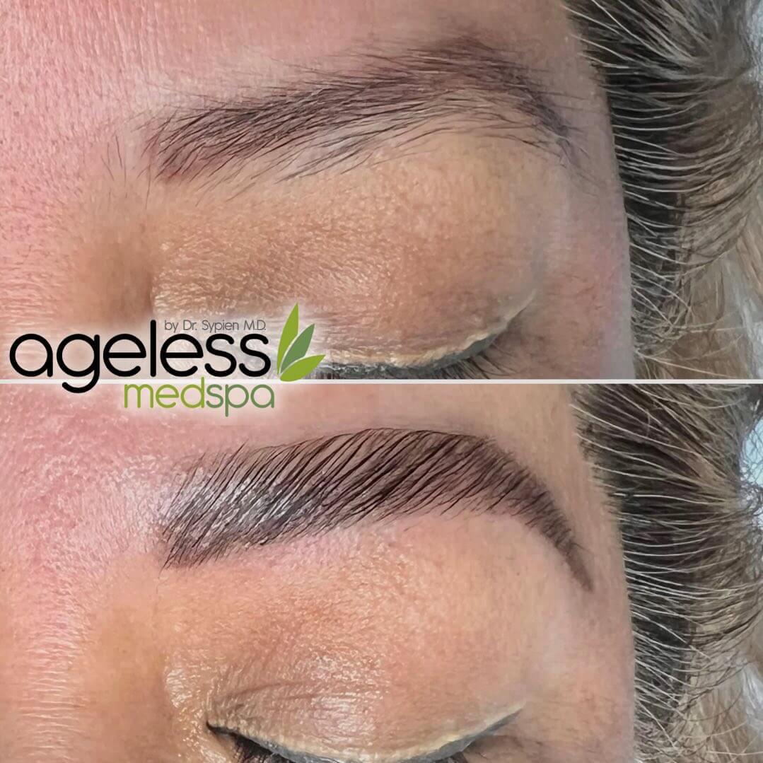 Ageless MedSpa offers microblading services to help create your eyebrows strand by strand. This gives your eyebrows a natural, 3D appearance to help even and thicken your eyebrows.