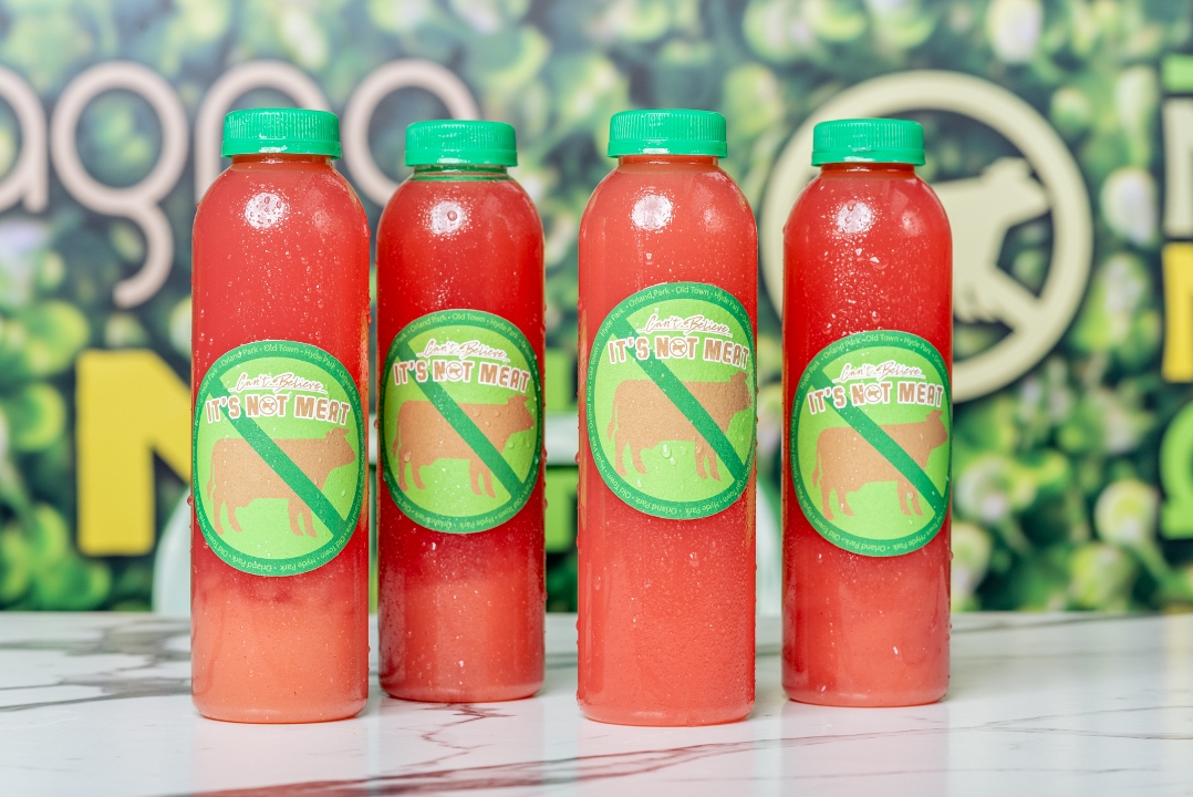 Vegan Hotdog toppped with onions, sports peppers, tomatoes, relish, mustard and celery salt. Comes with bag of chips.