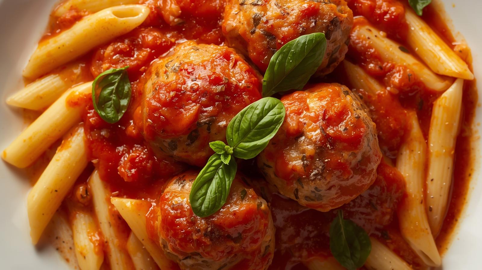 A hearty plate of tender penne topped with rich, slow-simmered marinara sauce and served with Italian-style meatballs. Finished with a sprinkle of Parmesan and fresh herbs. Served with fresh toasted garlic bread.