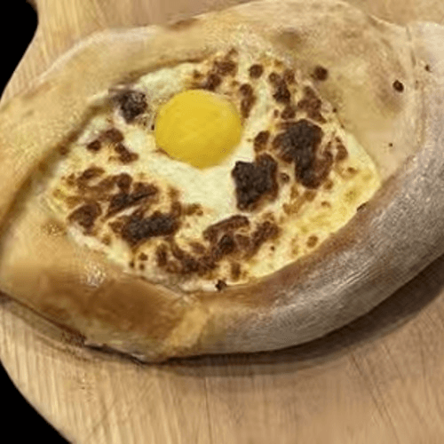 Traditional Georgian boat-shaped dough stuffed with cheese, butter and egg yolk