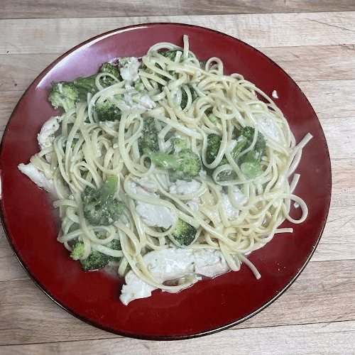 Chicken & broccoli sauteed with extra virgin olive oil & garlic tossed with linguine and parmesan cheese