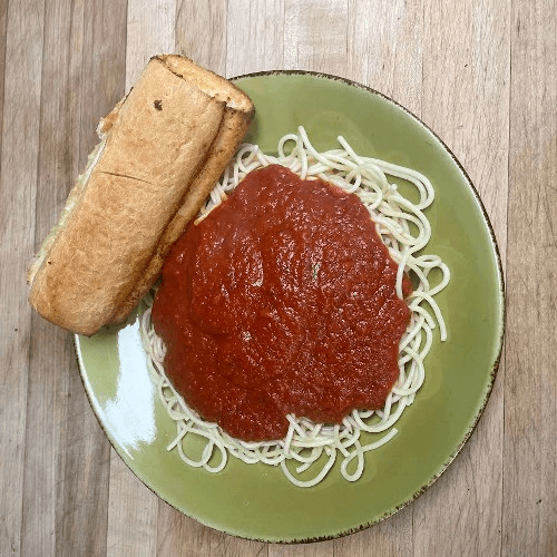 Served on garlic bread with mozzarella