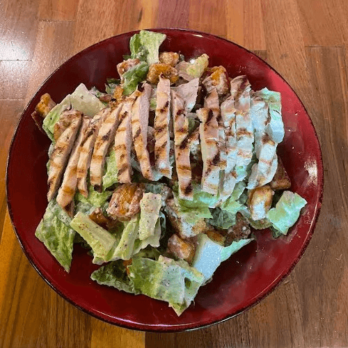Romaine lettuce tossed in Caesar dressing with bacon & homemade croutons
