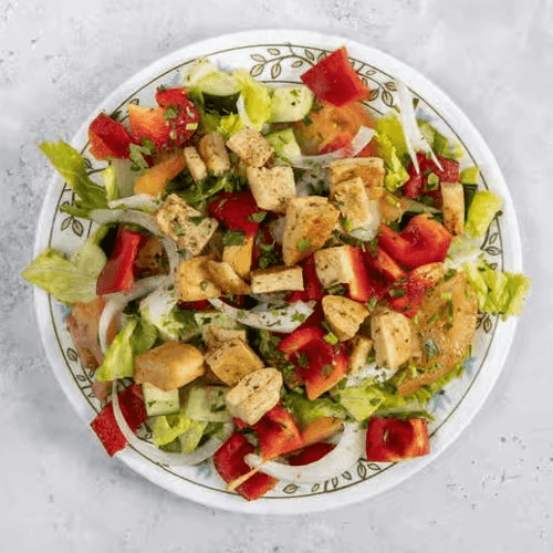 Lettuce, cucumbers, tomatoes, parsley, mint, green peppers, onions and toasted bread, tossed in a lemon vinaigrette dressing.