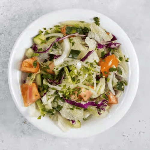 Lettuce, tomatoes and onions in a lemon vinaigrette dressing.