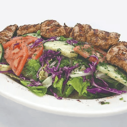 Cubes of beef tenderloin served with lettuce, tomato, onion and tahini sauce.