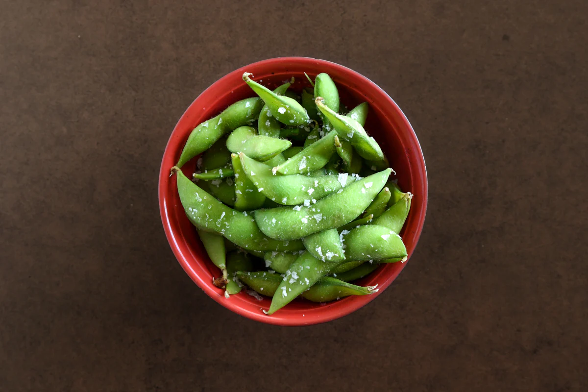 avocado (10 pcs) with edamame, choice of starch, and fruit.