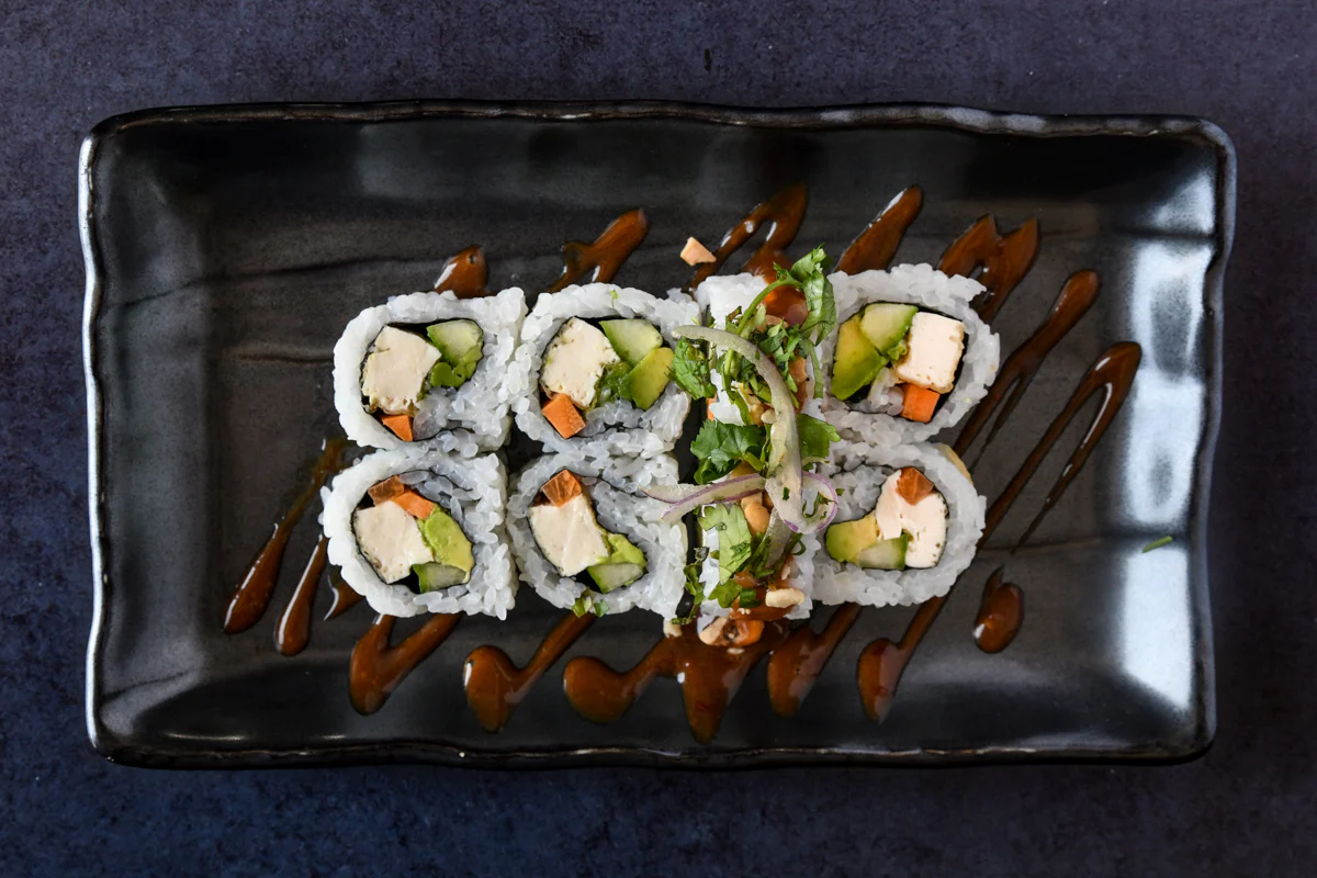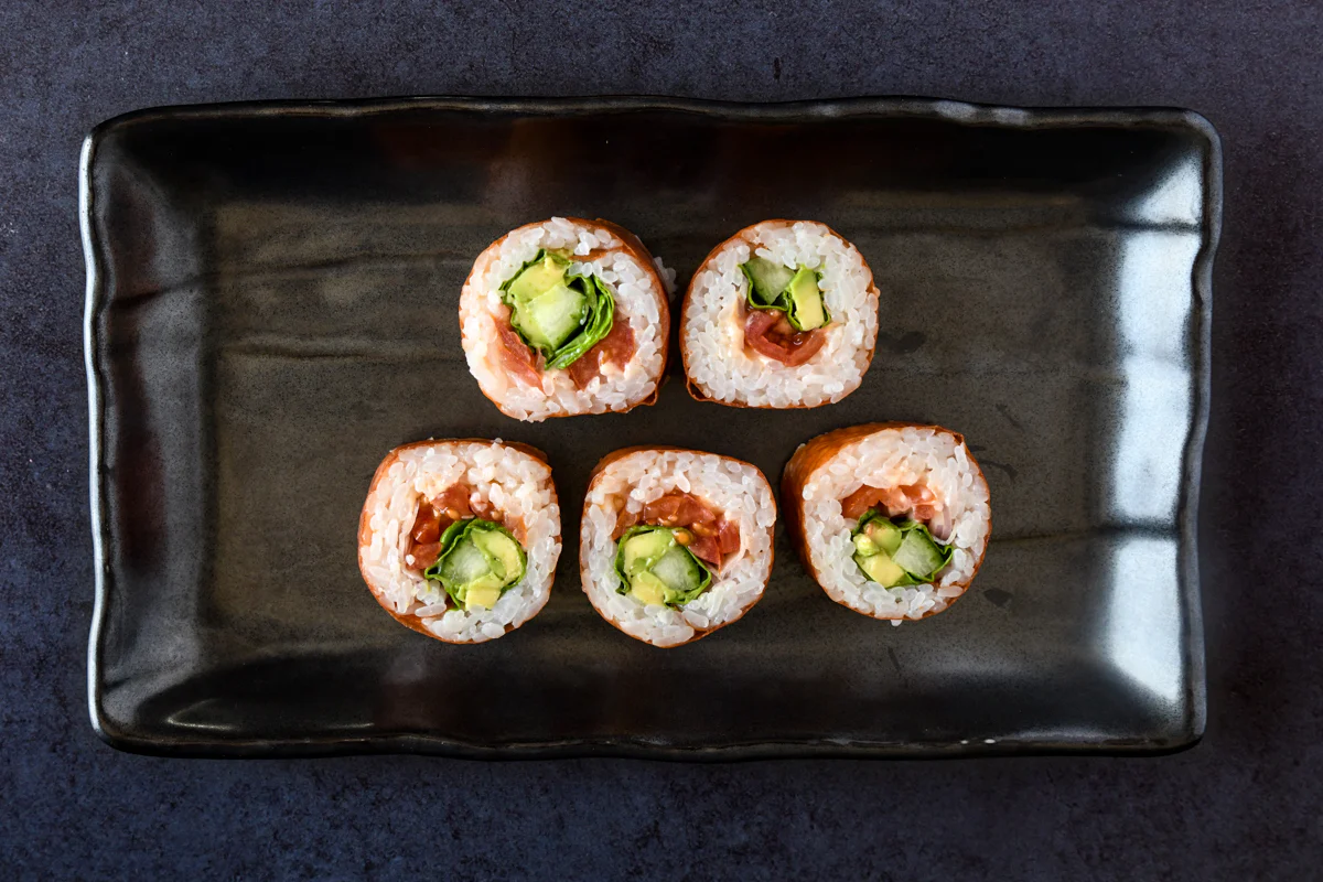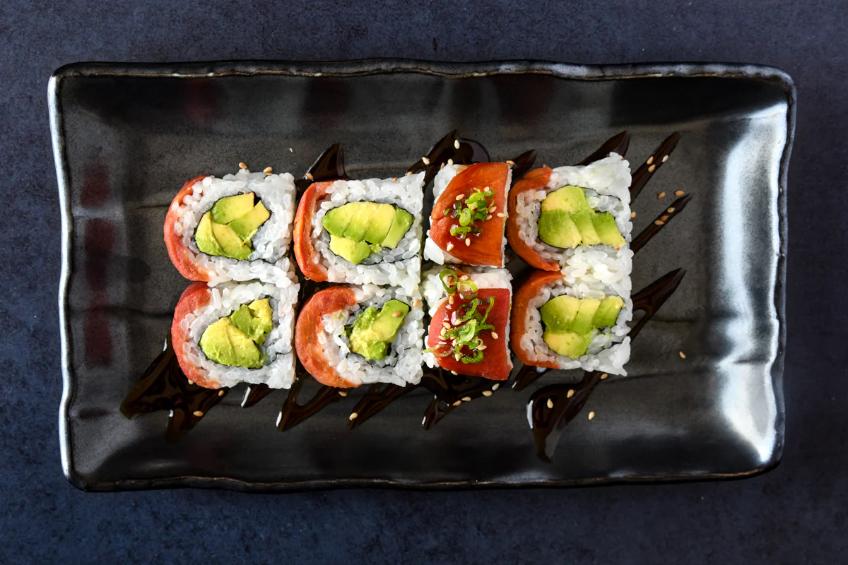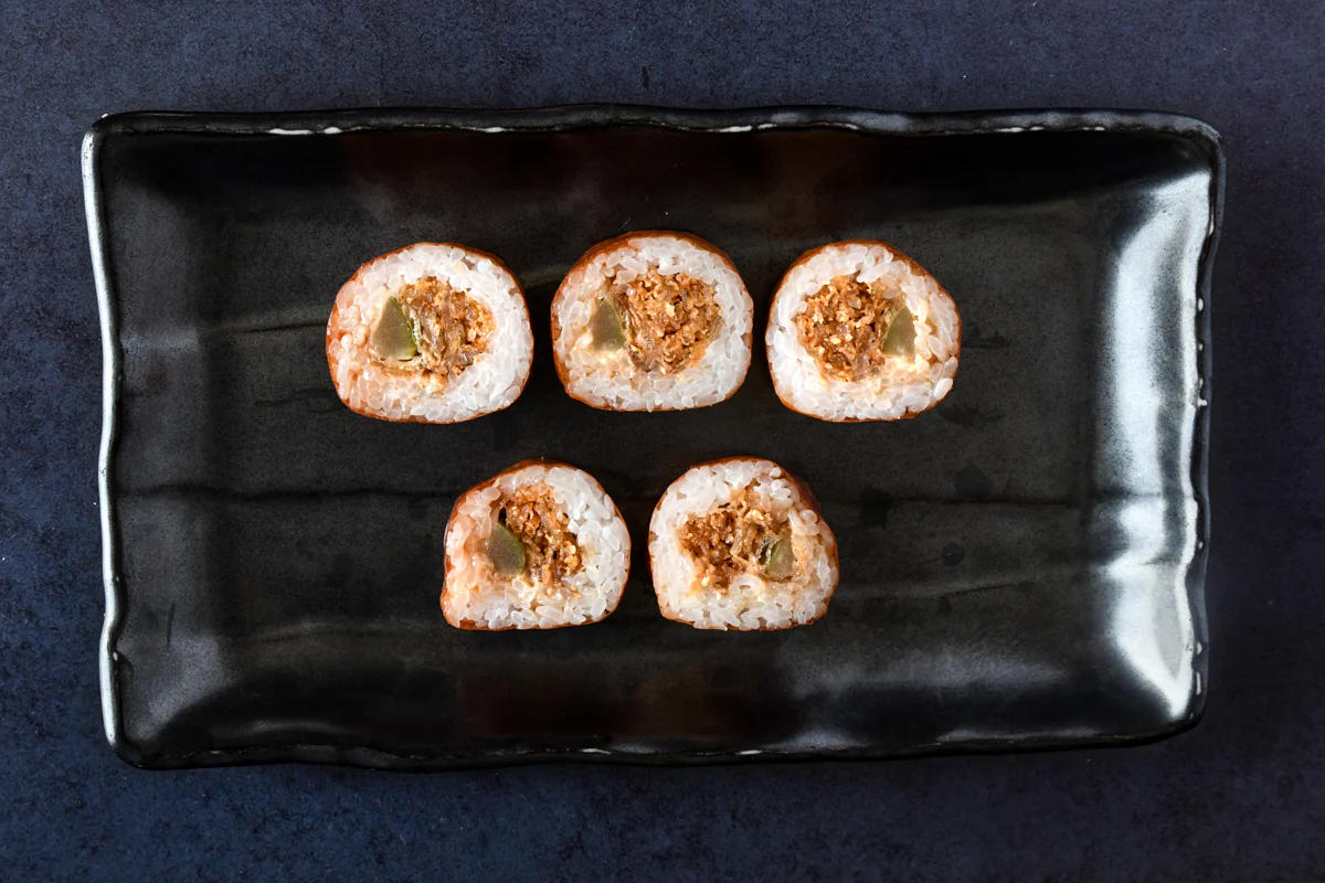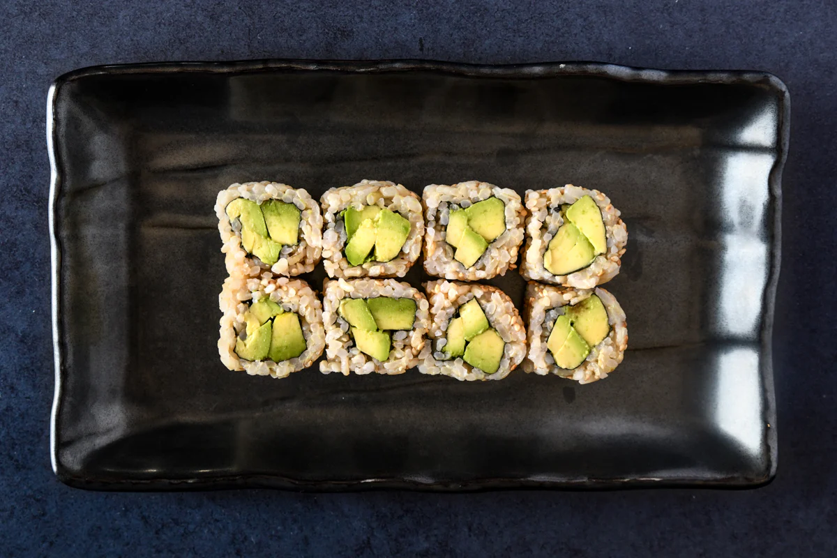 plant based tuna, avocado, sesame seeds, scallion, sweet soy (8 pcs)