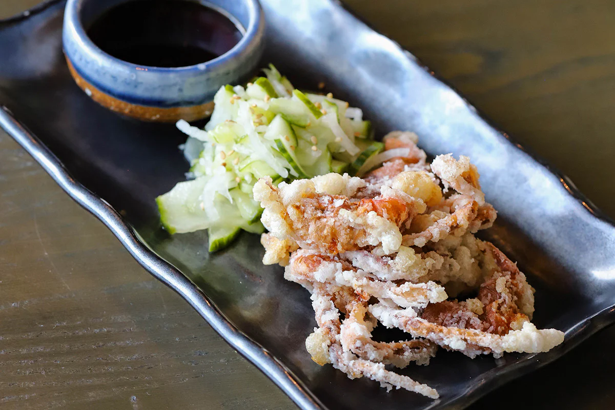 crispy soft shell crab, cucumber sunomono, tempura sauce