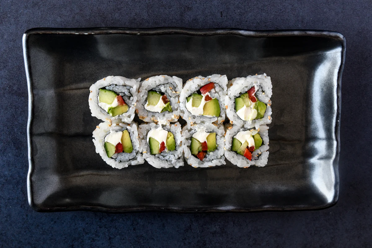 red pepper, vegan cream cheese, avocado, cucumber (8 pcs)