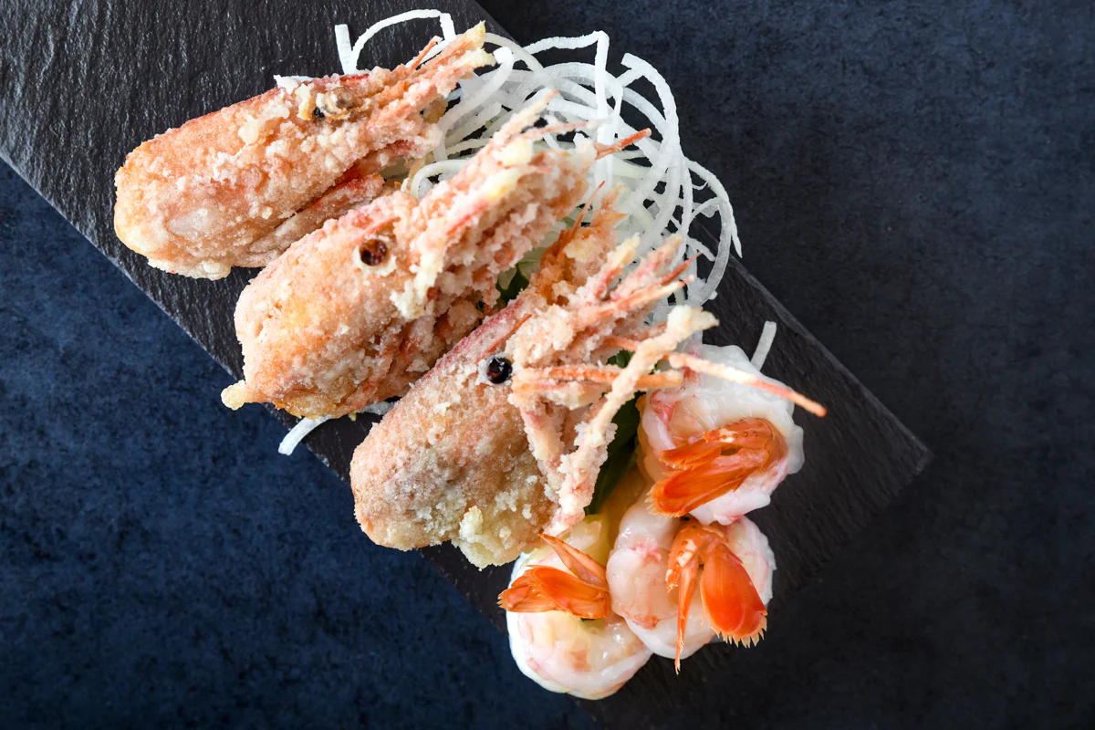 spot prawn with fried head canada, north pacific ocean, pots & traps