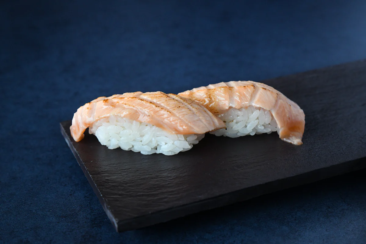 seared atlantic salmon belly british columbia, faroe islands, norway; marine net pen the seafood in this product carries an eco-certification