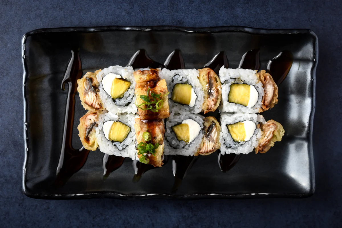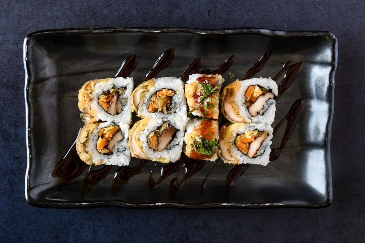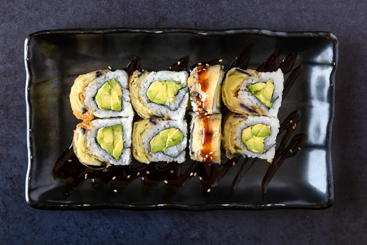 eggplant vegan tempura, avocado, sweet soy sauce (8 pcs)