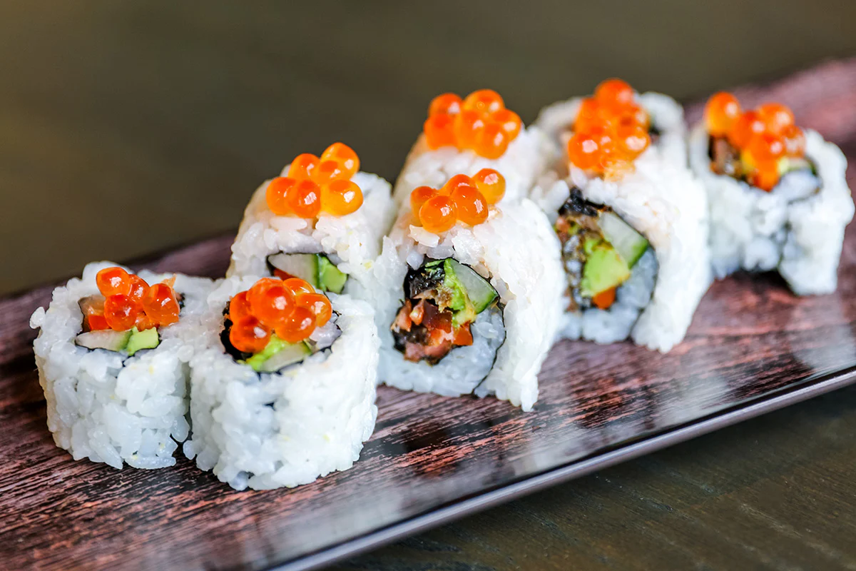 7 Rolls - cabo roll*, cali roll, crunchy blue, crunchy l.a., sake*, spicy tekka*, rainbow roll* Please allow an additional 30 minutes from the pick-up time to prepare these platters. *item contains raw seafood, shellfish, beef or egg. consuming raw or undercooked meat and seafood may increase your risk of foodborne illness. bones can happen in dishes with fishes