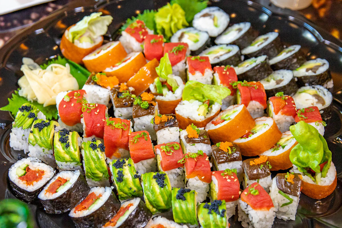 7 Rolls - avo kaluna, cowgirl, eden, v.l.t., vegan south pacific, green goddess, unami maki Please allow an additional 30 minutes from the pick-up time to prepare these platters.