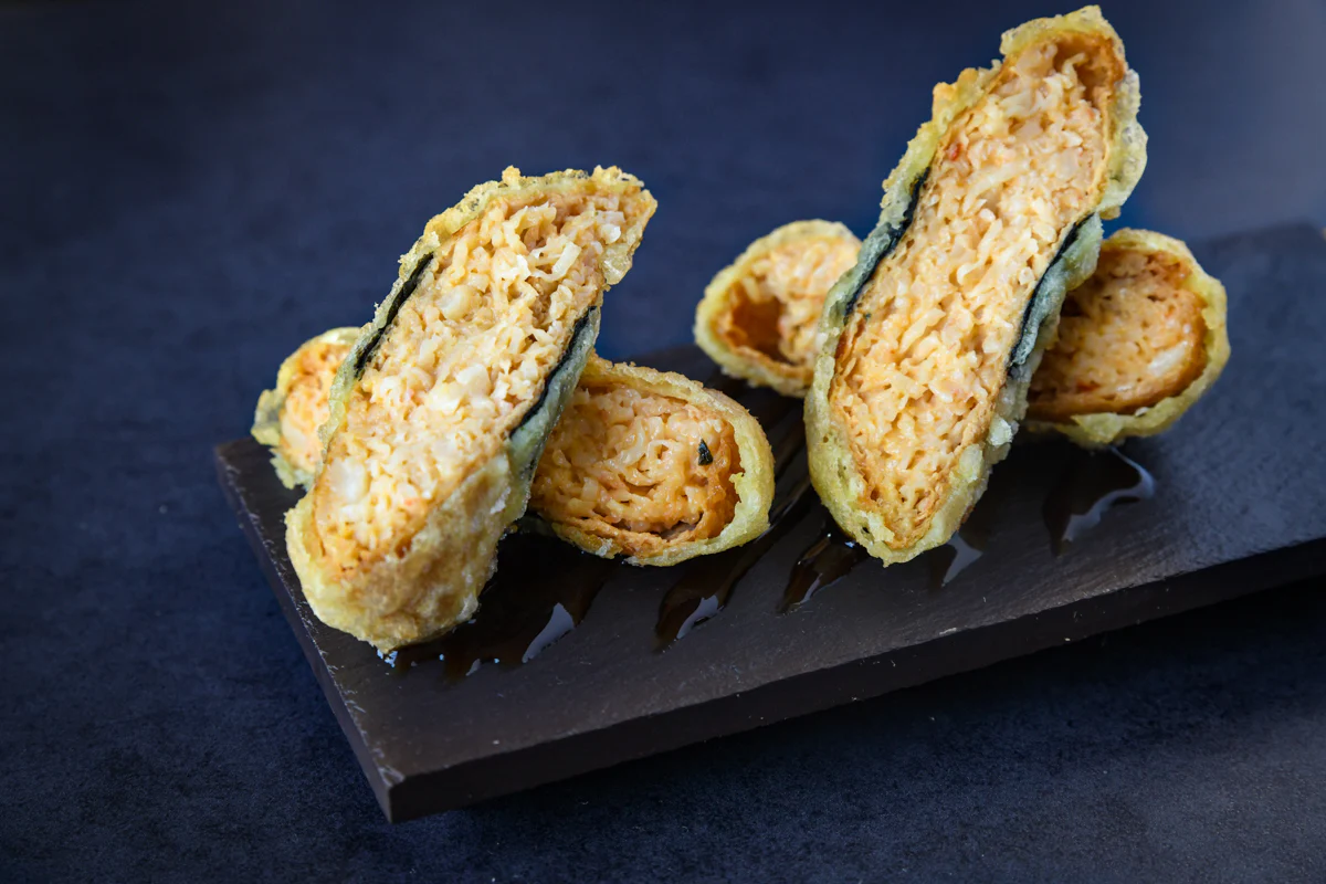 tofu and napa cabbage vegan tempura, scallion, vegan creamy spicy sauce (8 pcs)
