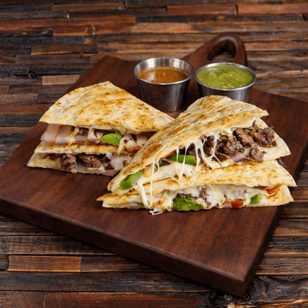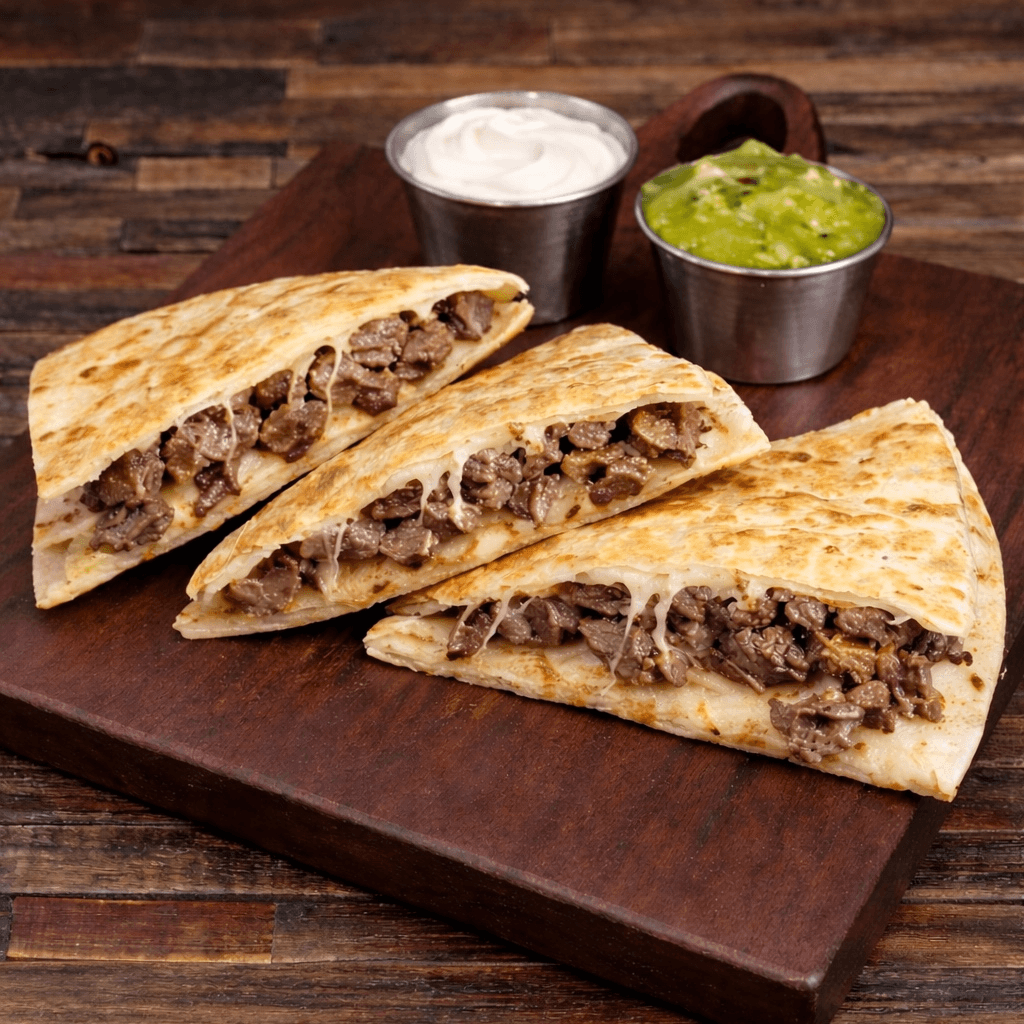 12" flour tortilla filled with choice of protein and cheese. Served with a side of sour cream and guacamole.