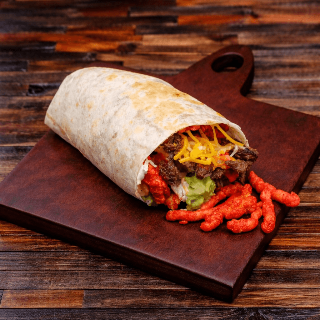 Choice of protein, flamin' hot cheetos, cheese, fresh guacamole, sour cream and pico De gallo