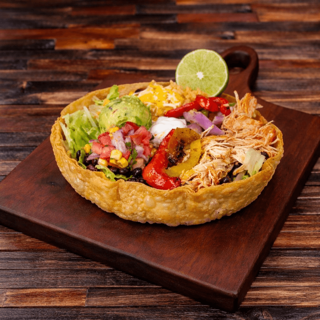 Choice of protein, rice, black beans, grilled fajita veggies, pico De gallo, fresh guacamole and lettuce.