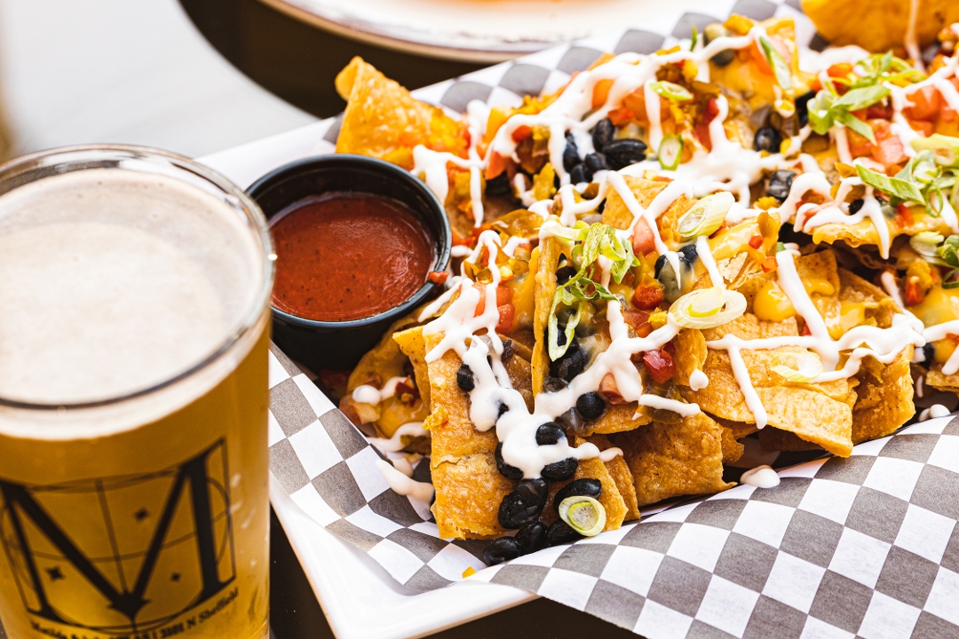 house jalapeño queso sauce, roasted poblano & tomatillo salsa, sour cream, pickled fresnos, black beans, cilantro | add fresh guacamole for $2, chopped chicken breast for $3, chipotle short rib or marinated steak for $5