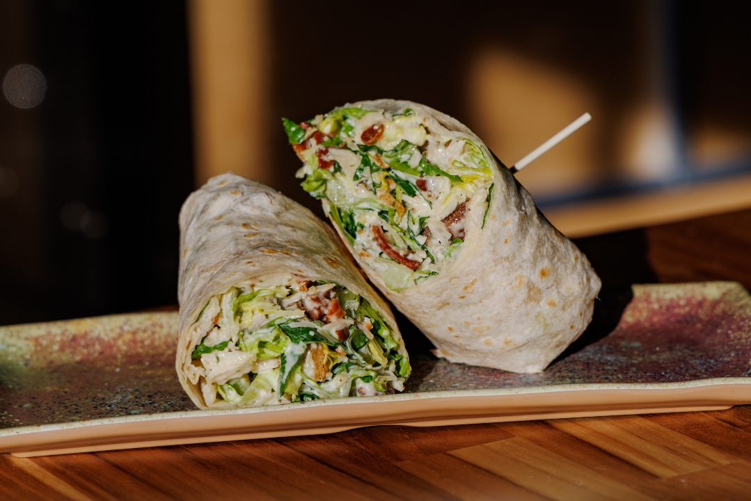 romaine lettuce, parmesan cheese, house dressing, wrapped in a flour tortilla