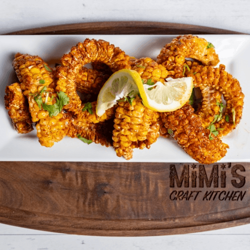 Sliced elotes in our signature seasoning, and house blended sauce.