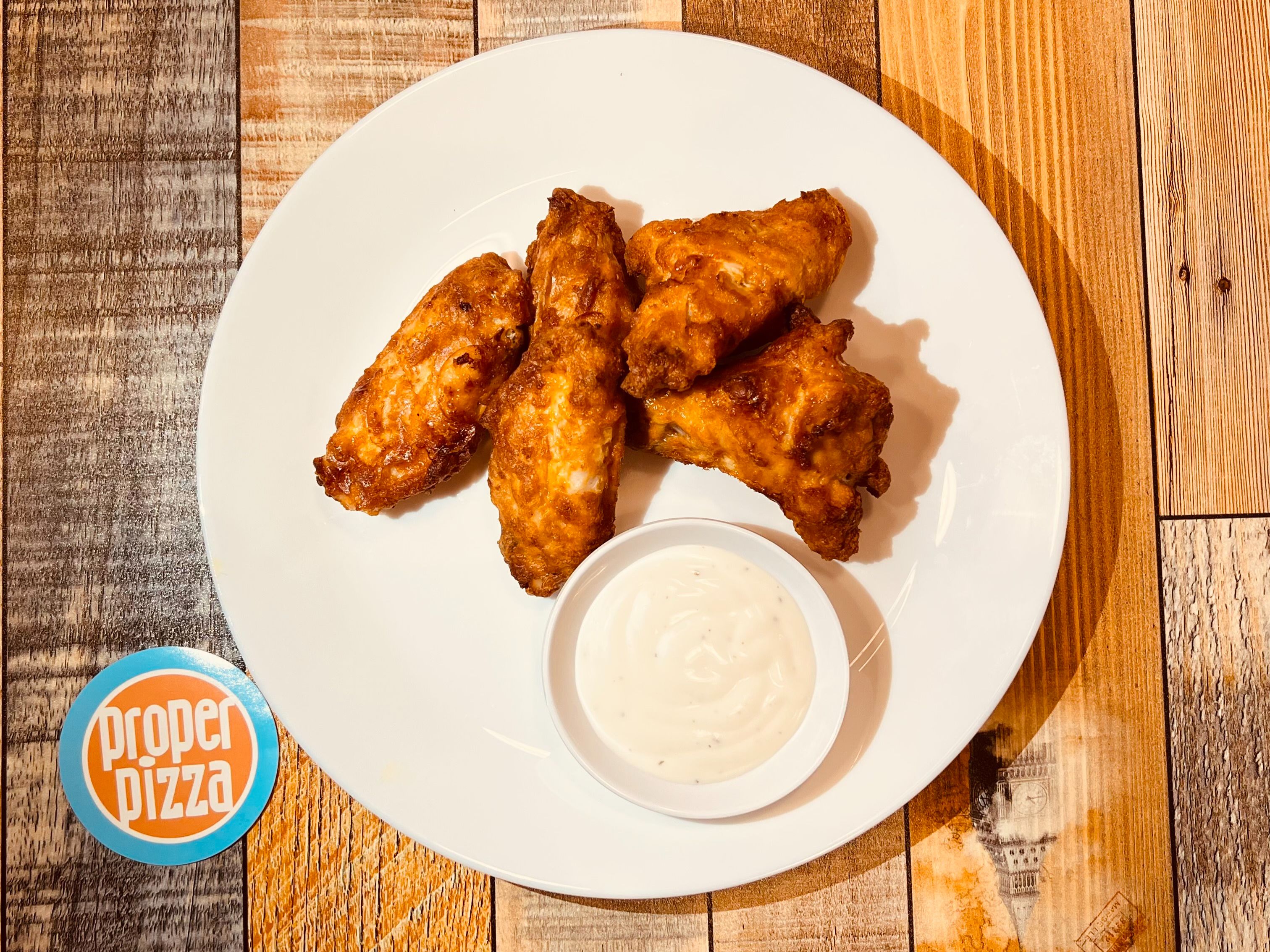 Fresh jumbo wings seasoned with our spices, served plain or tossed in buffalo or BBQ sauce with a choice of dressing