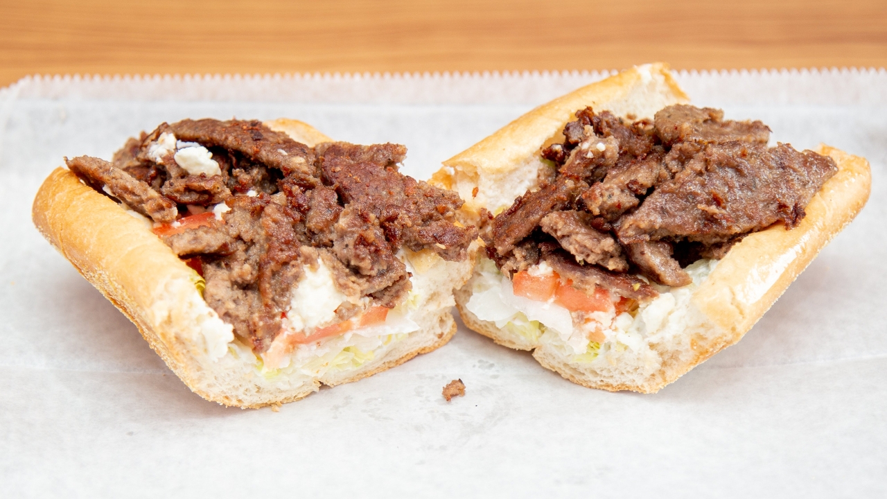 grilled chopped gyro meat, raw onion, iceberg lettuce, tomato, feta, tzatziki sauce and served on Philly amoroso rolls. All-white chicken breast substitution available.