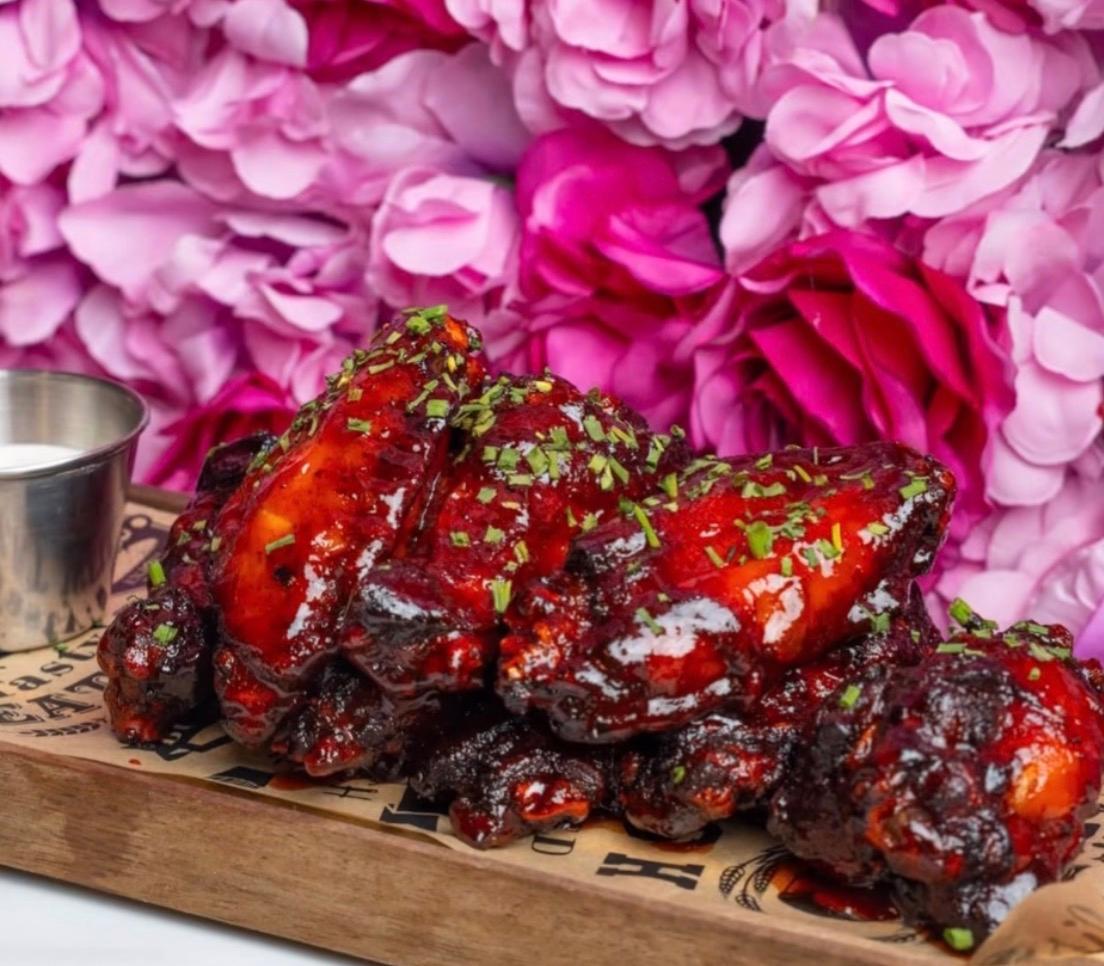 Deep fried egg roll stuffed with jerk oxtail, red beans and rice Drizzled with a jerk ranch dressing