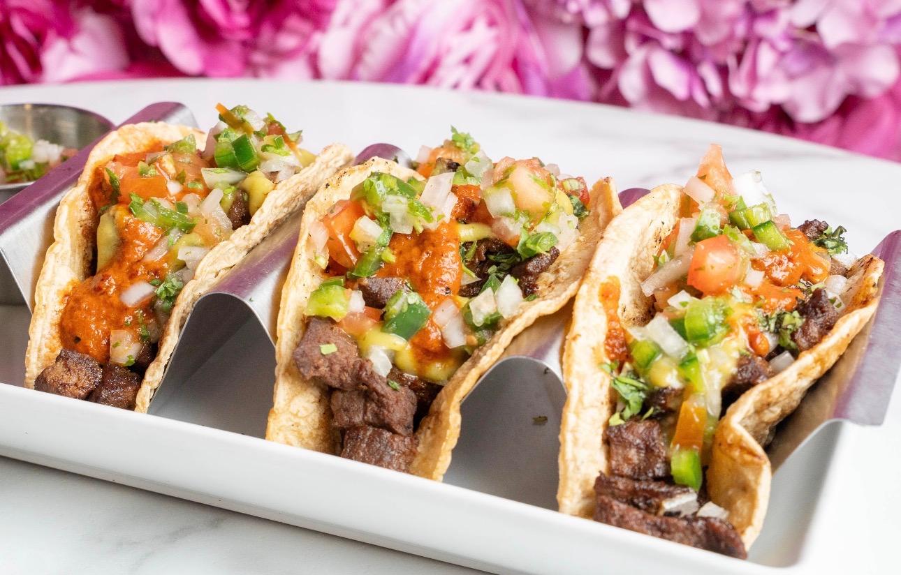 Smoke Salmon, Avocado, roasted tomatoes, pickled onions, and capers.
