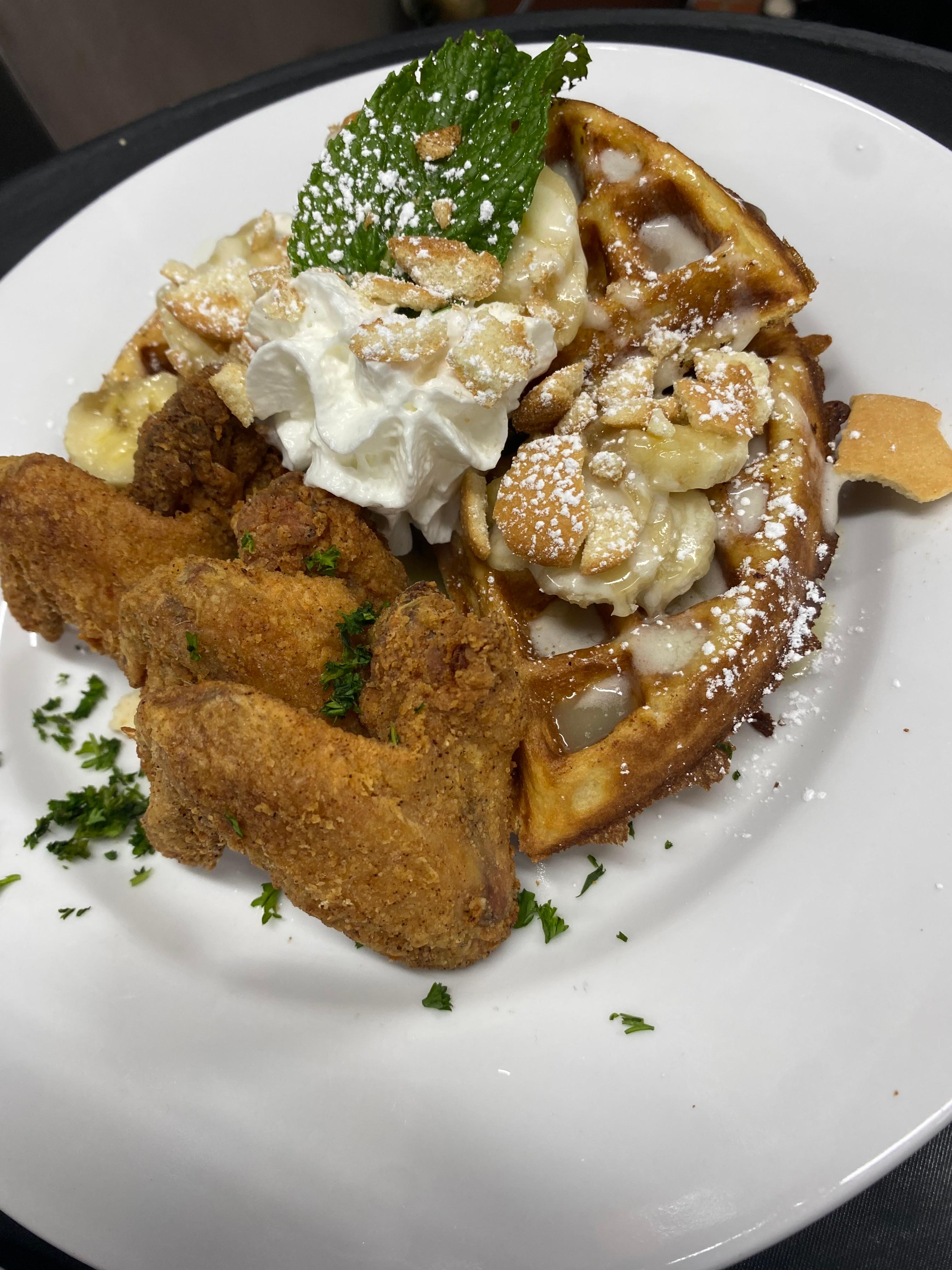 Banana pudding waffles, Chicken and eggs