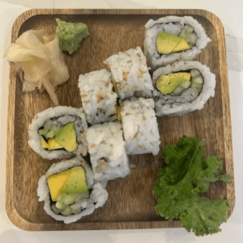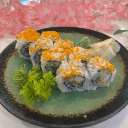 Crab stick, avocado, cucumber, masago, spicy mayo