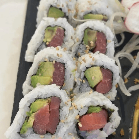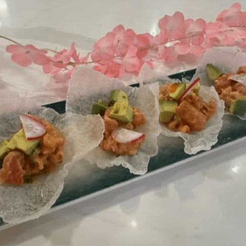Tuna loin, green onion, mayo, sriracha, avocado served with crispy tortilla