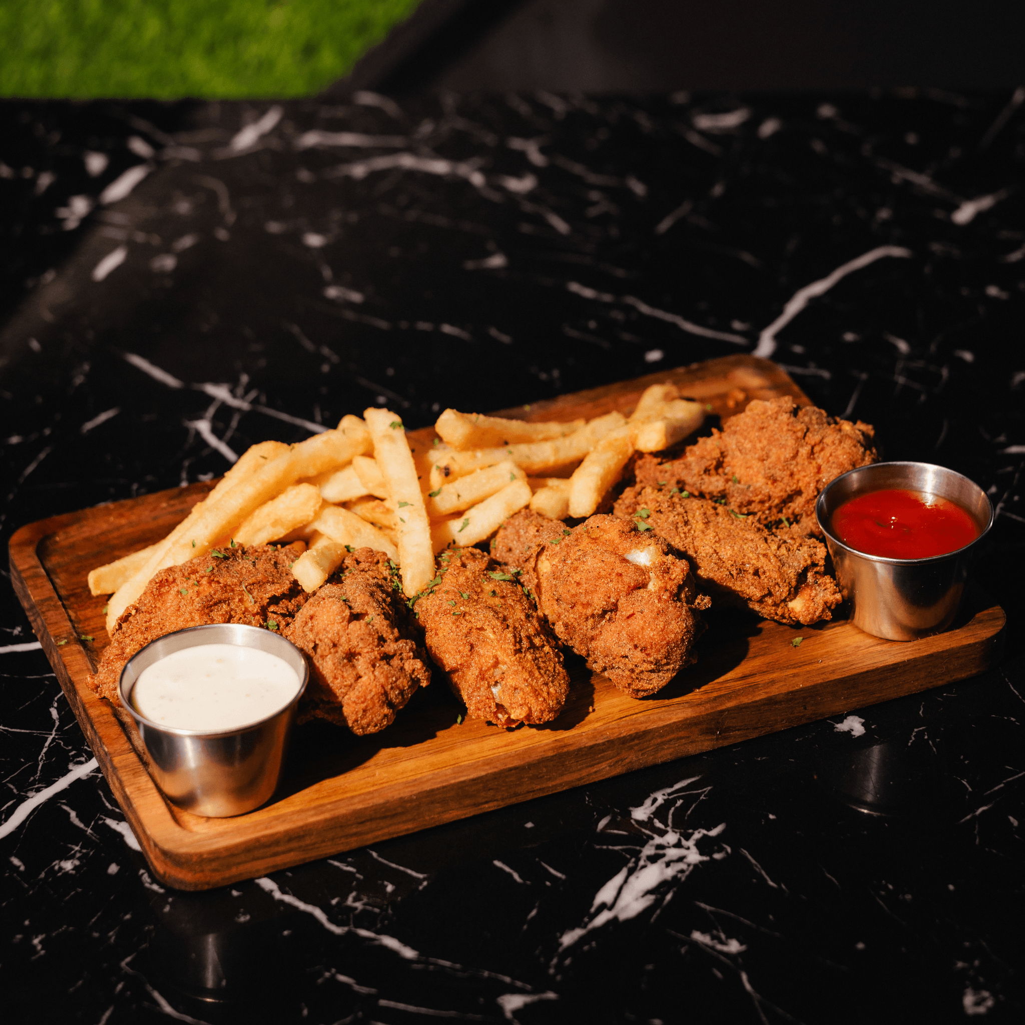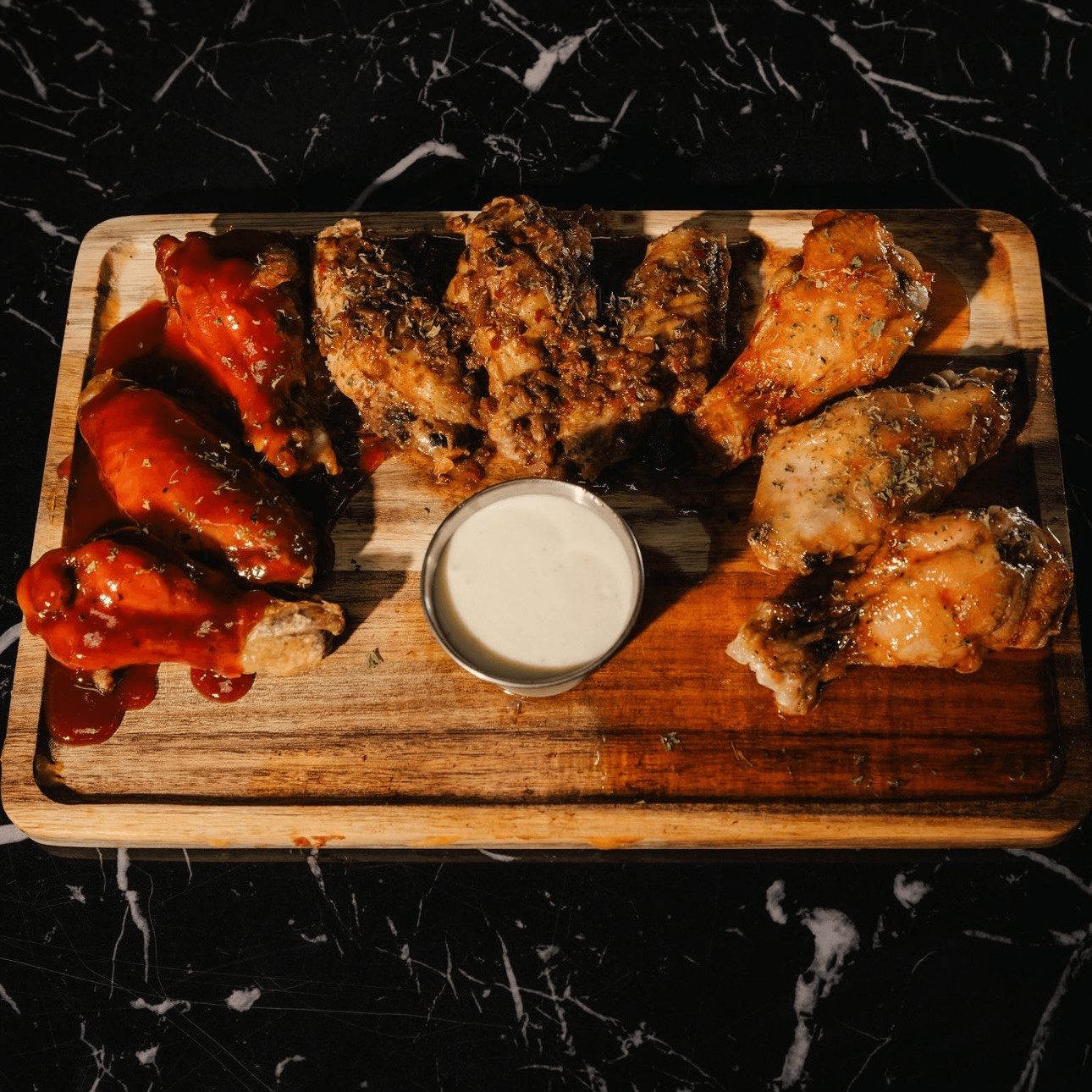 Try our signature house flavors, jerk, honey hot & BBQ sauce, in a slow-cooked variety wing platter.