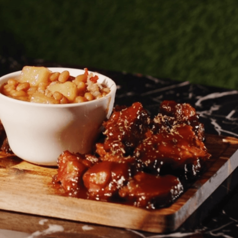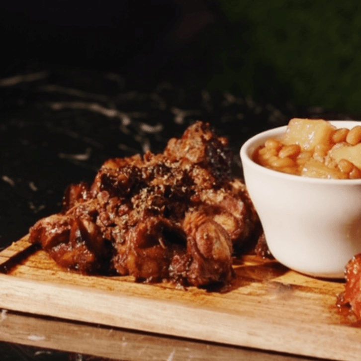 Chunks of this handcrafted butchered turkey meat grilled in special savory BBQ sauce will have your taste buds satisfied.