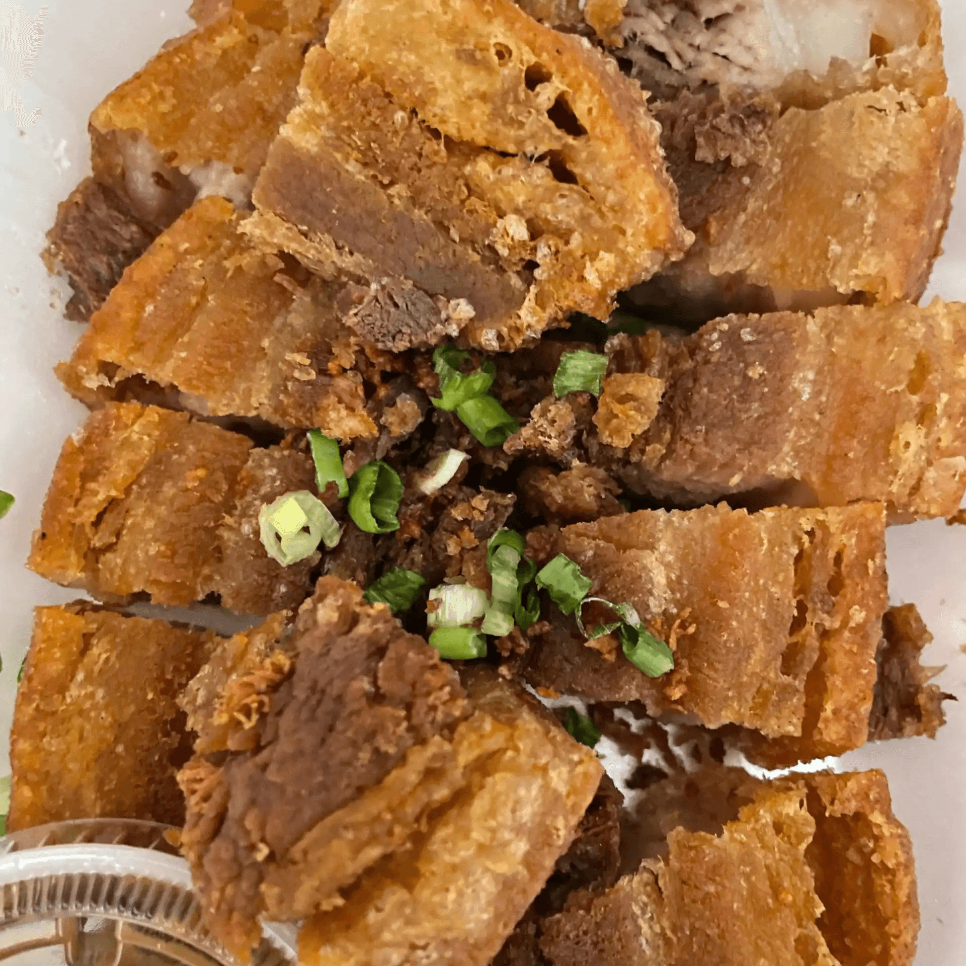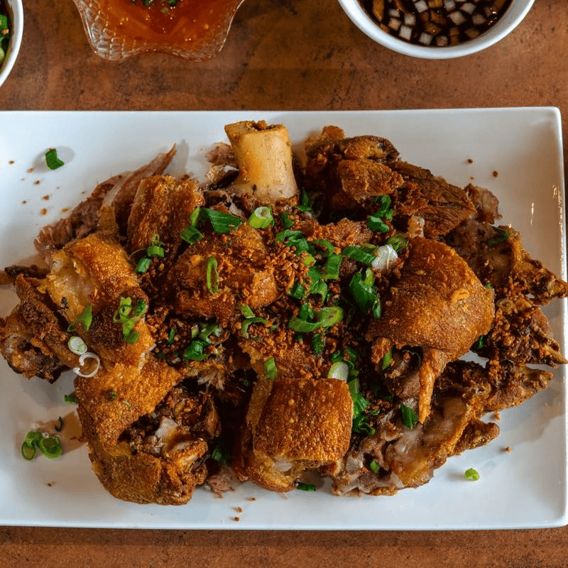 Seasoned suckling pork belly fried to a crisp. Served with a house-made sweet and tangy liver pate sauce