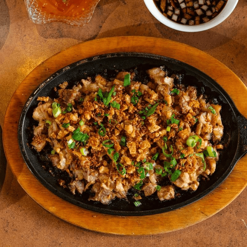 Chopped fried pork belly sauteed in aioli, onions, chili flakes, soy sauce and calamansi