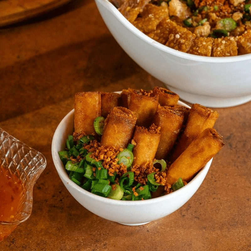 (10) Fried mini Chinese-inspired egg rolls filled with pork, diced onions, carrots, water chestnuts and spices. Served with sweet and sour sauce