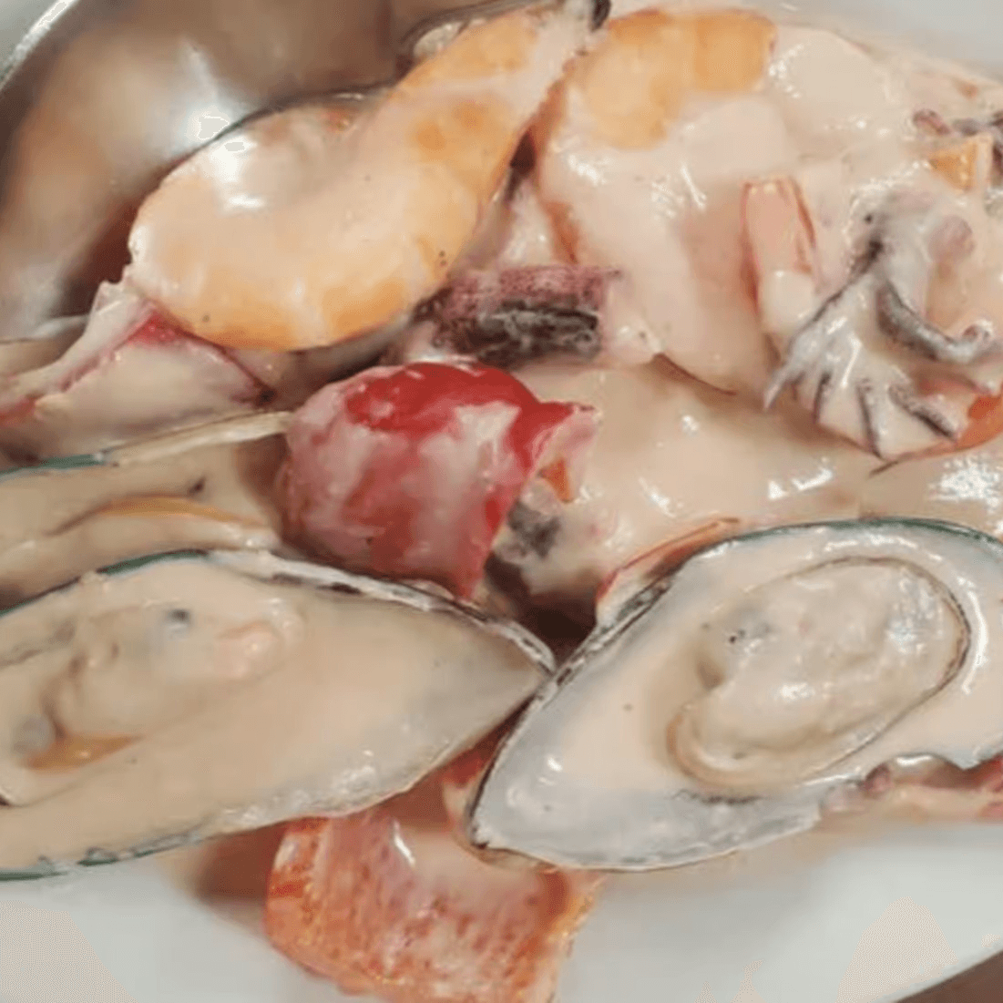 Coconut milk stewed with mussels, shrimp, squid, onions, garlic and long chilies