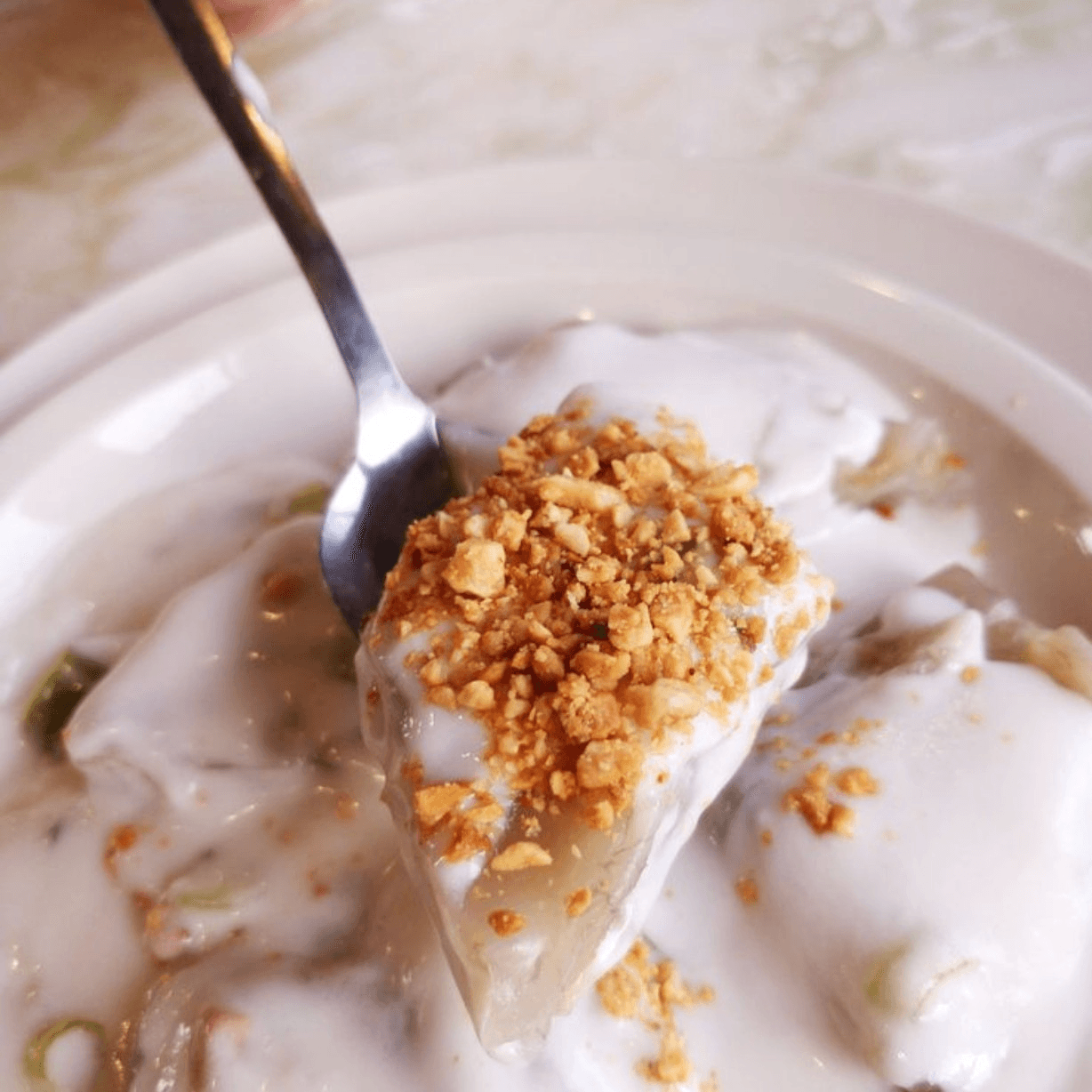 Garlic pork oil, onion, dried onion, green onion, cilantro, and ginger fish sauce.