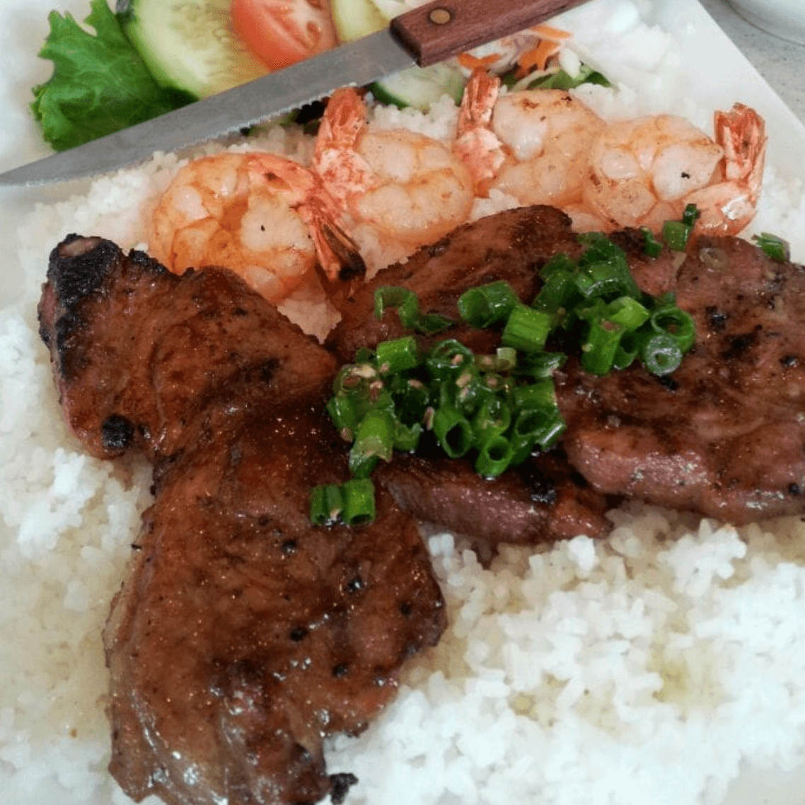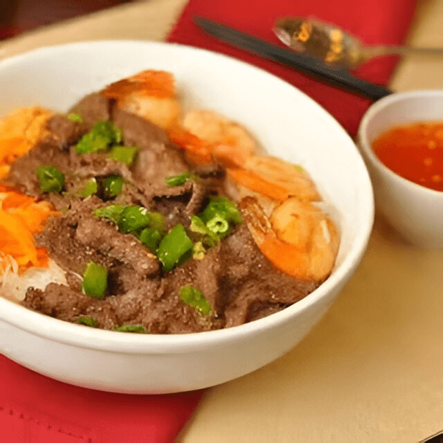 (Cơm tấm bò nướng, tôm)