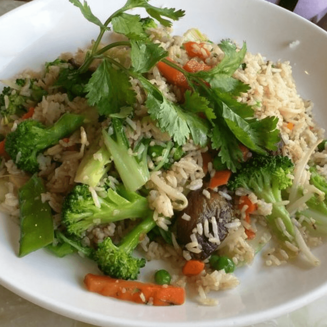 (Cơm chiên rau cải chay)