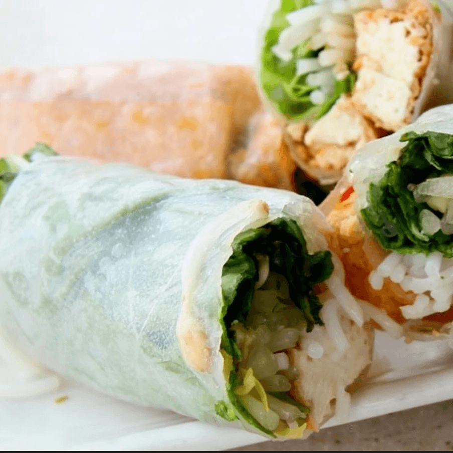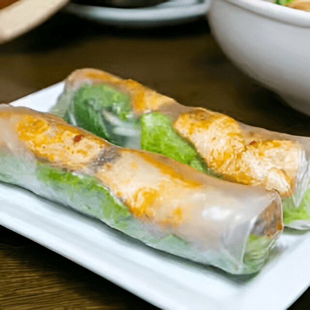 (2). Wrapped with noodles, lettuce, mint, chives, and bean sprouts.
