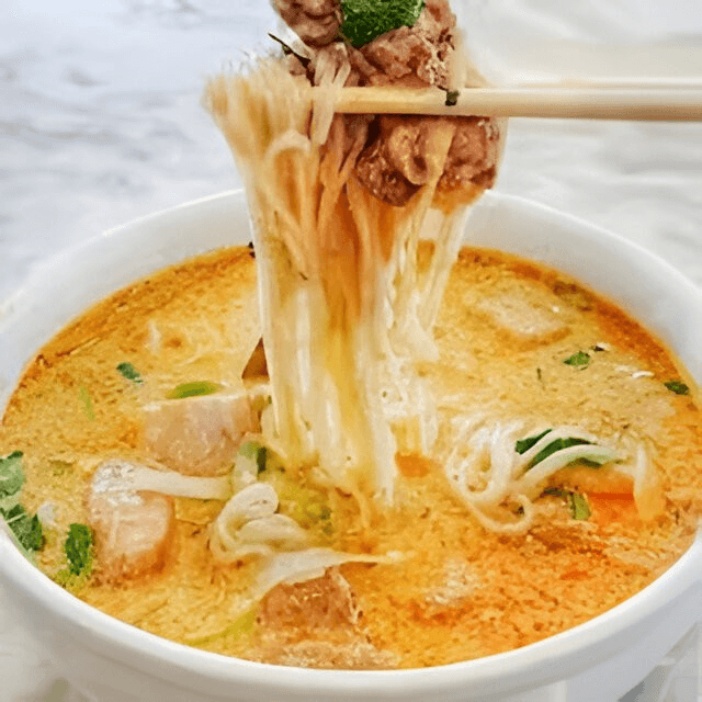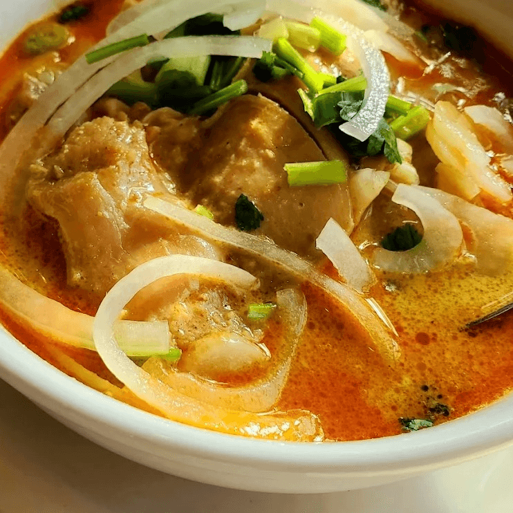 (Bún cà ri gà) Curry chicken, taro, coconut milk, onions, scallions, and cilantro.