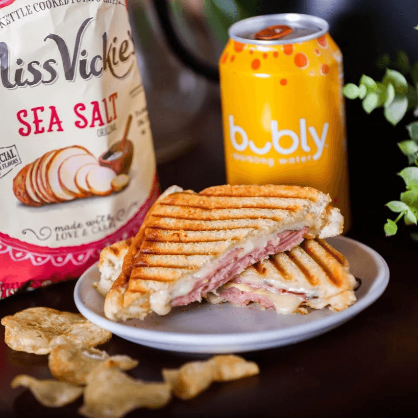 Turkey & American mo' melt with a hint of honey mustard, and crispy chips, all served panini style